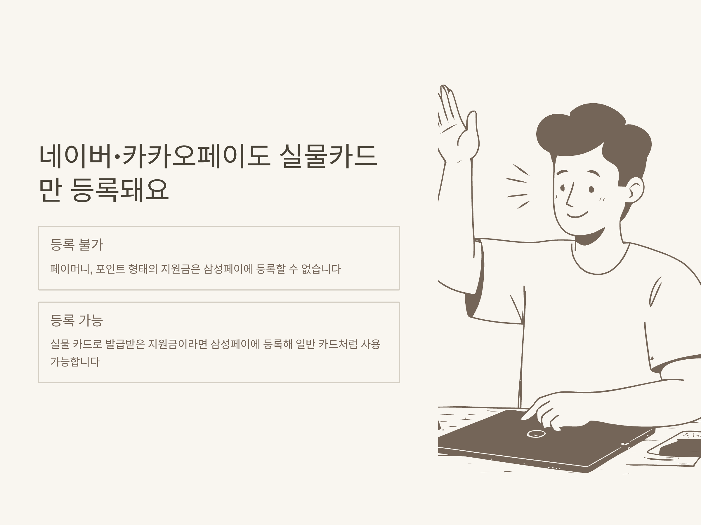 | 지원금카드 등록 | 신용/체크카드형은 대부분 가능 | 삼성페이 안내 |
